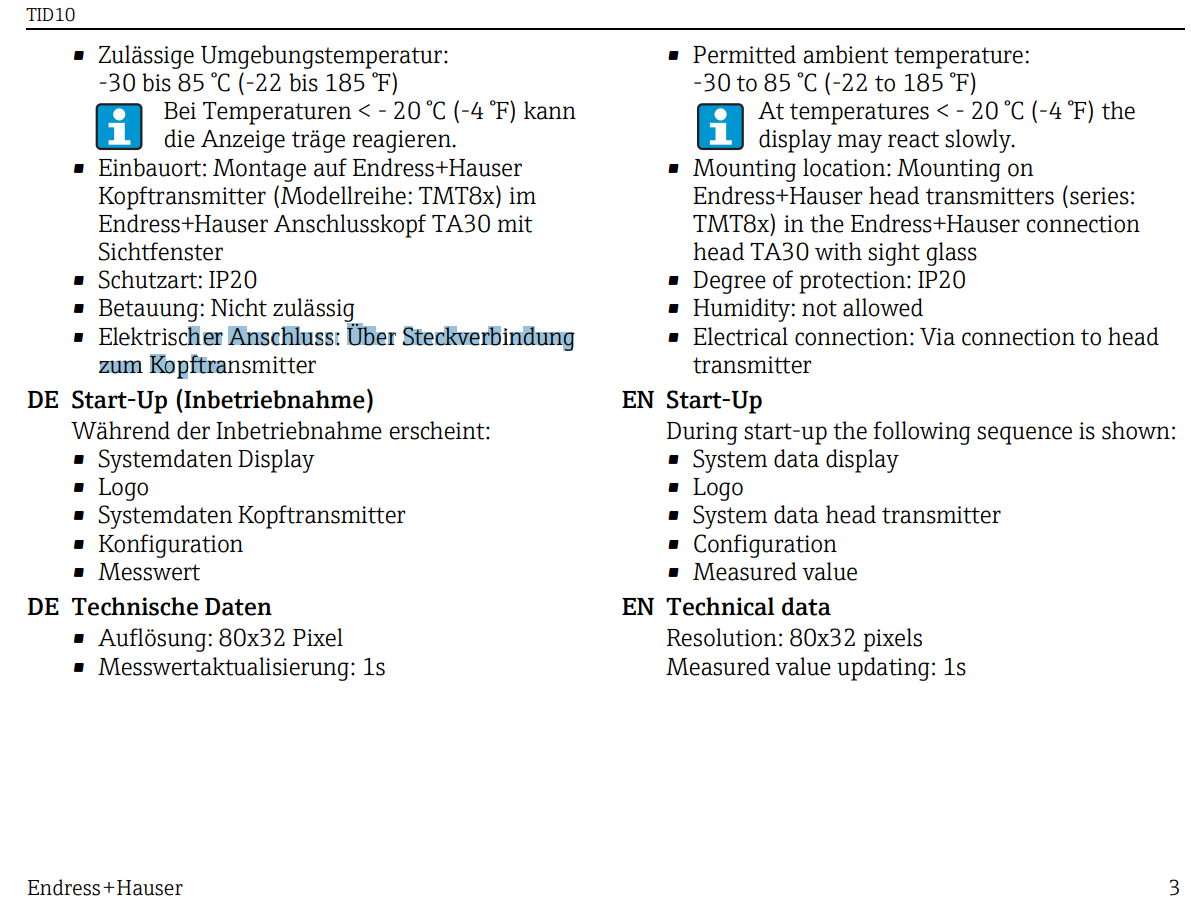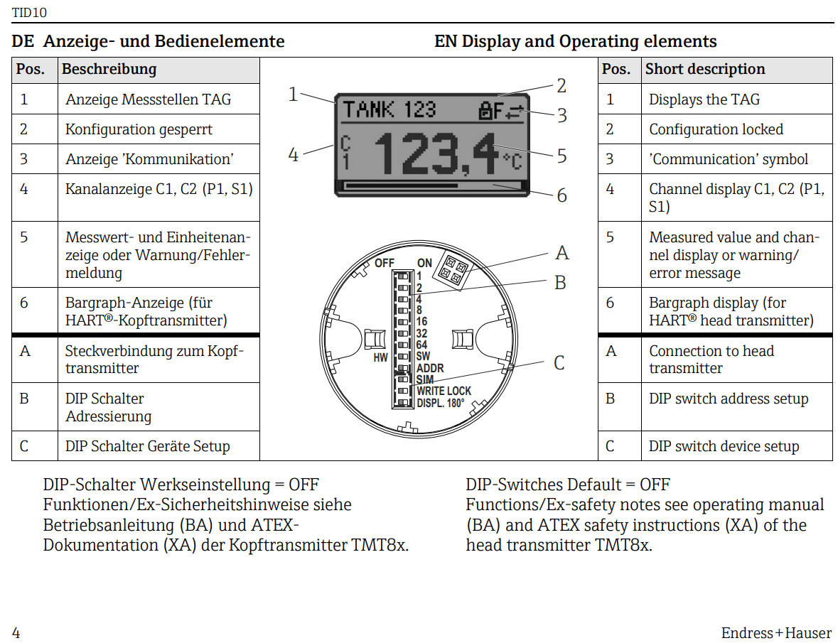 网站首页    操作手册    温度计    温度变送器    TID10 E+H温度变送器显示器说明书