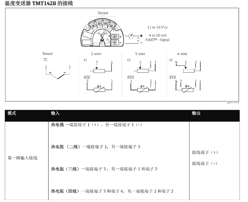 网站首页    技术支持    安装接线    温度变送器 TMT142B的接线