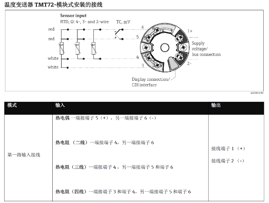 热电偶 一端接端子 5(+),另一端接端子 6(-)