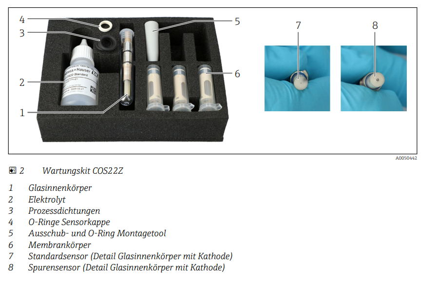 适用于COS22D/COS22E/COS22等传感器的溶解氧维护包,订购型号可以参考下面选型表