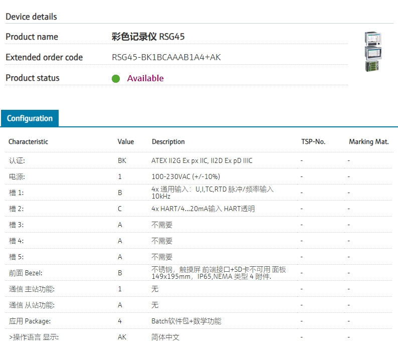 扩展订货号 (RSG45-BK1BCAAAB1A4+AK)