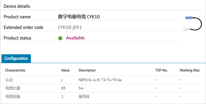 CYK10-J051 扩展订货号 CYK10-J051 名称 数字电极电缆 CYK10 基本描述 Application: digital sensors with
