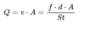 漩涡的频率(f)与流体的流速(v)、漩涡发生体的宽度(d)及流体的雷诺数有关,公式为: