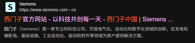 首先使用edge浏览器搜索西门子中国官网,选择带有以科技共创每一天标签的如图。