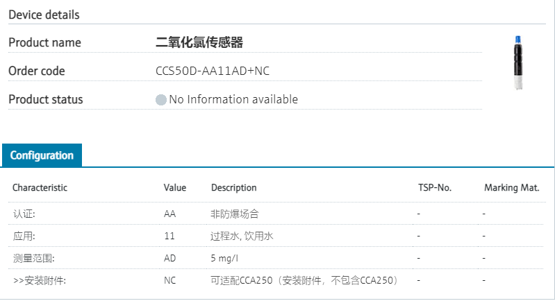 process control, flexible installation认证: AA 非防爆场合 应用: 11 过程水, 饮用水 测量范围: AD 5 mg/l >>安装附件: NC 可适配CCA250(安装附件,不包含CCA250) 型号参数