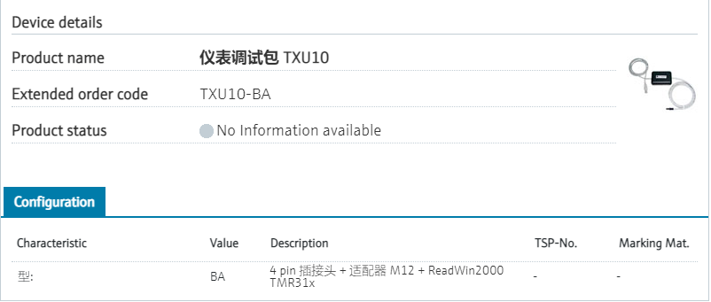 BA 4 pin 插接头 + 适配器 M12 + ReadWin2000 TMR31x