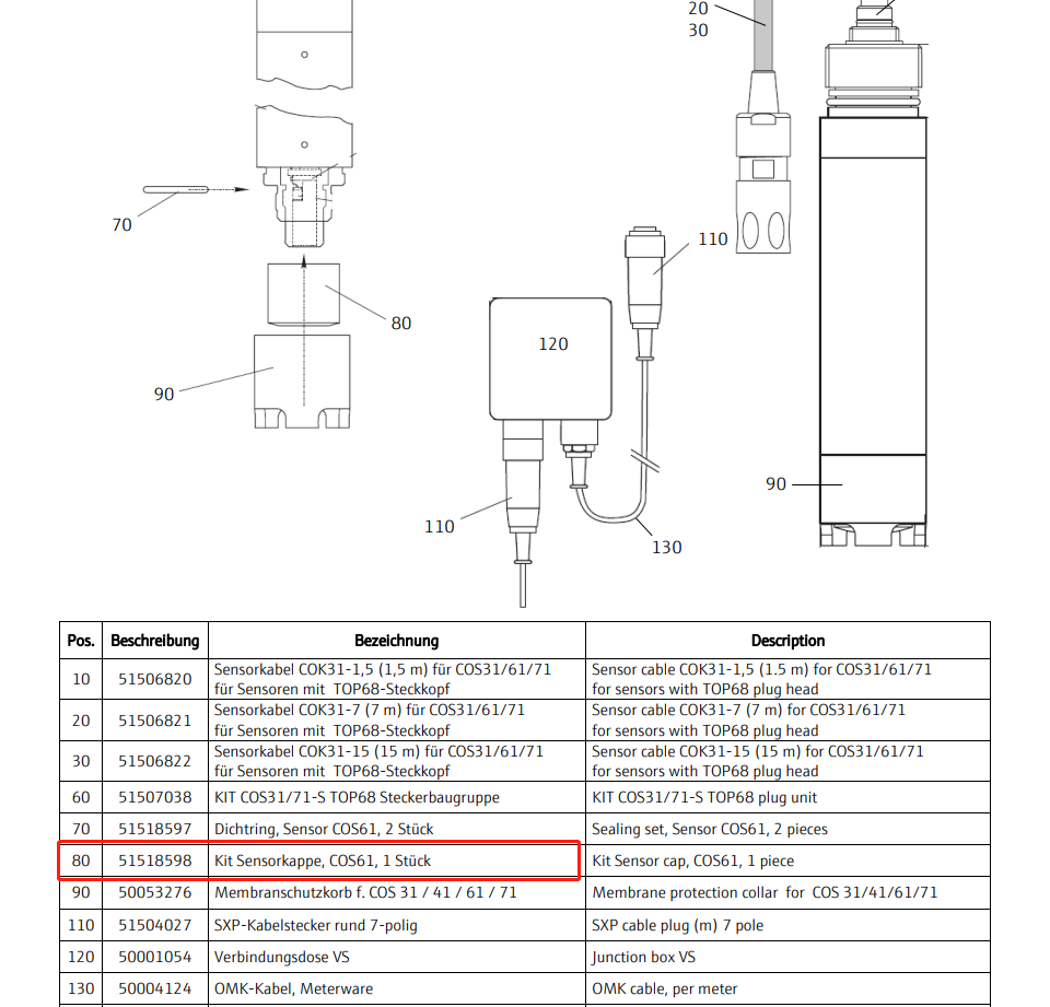 E+H荧光法溶解氧探头,自带15米电缆,跟COM223/COM253-WX0005变送器配套使用,一般为备件常用采购。 如果新项目不建议用COS61,建议用COS61D+CM442。