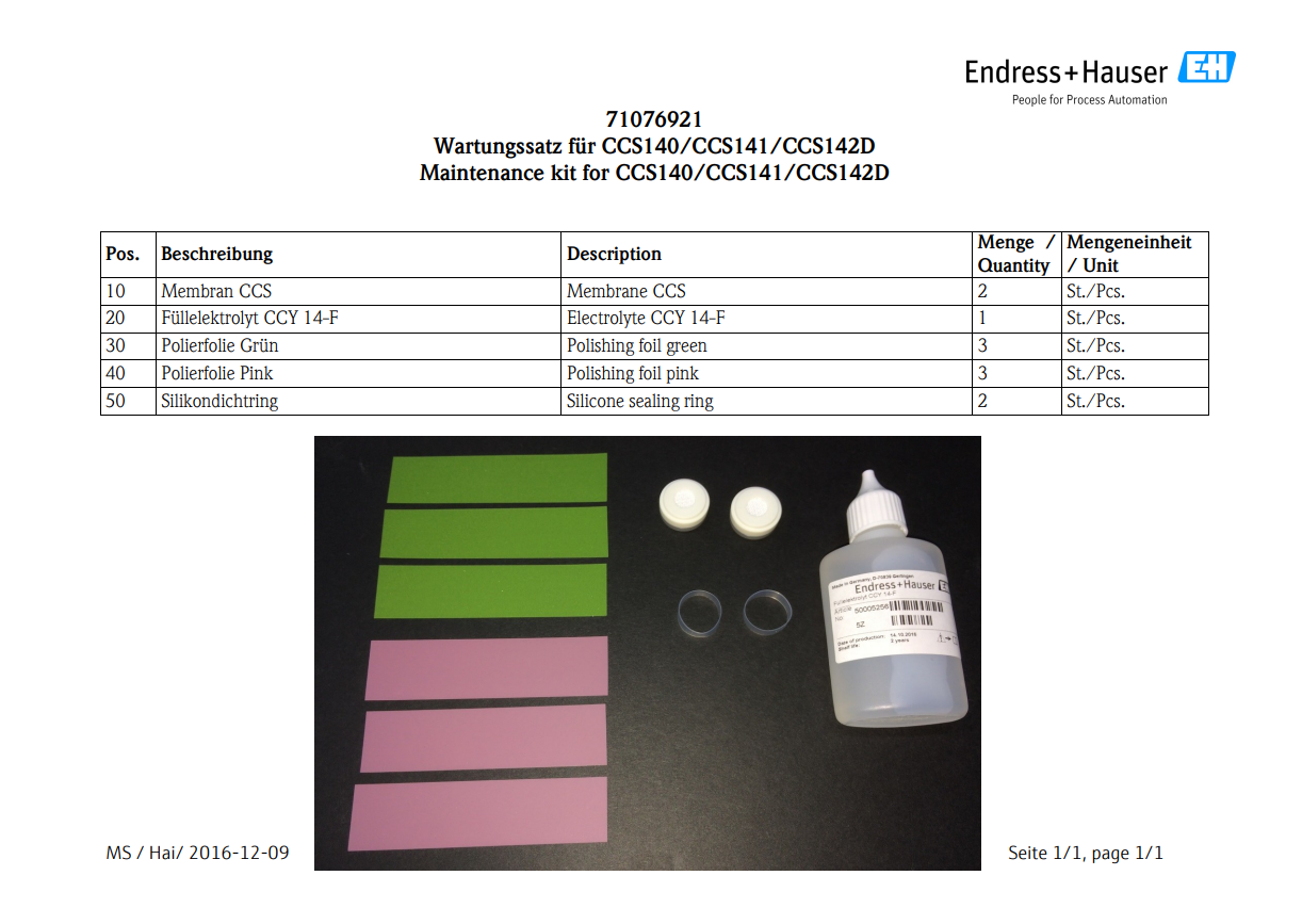 余氯探头CCS51/CCS51D维护包,包含两个膜片,一瓶电解液