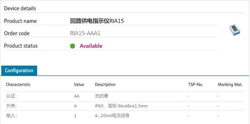 回路供电的4…20mA 过程指示仪,不带现场外壳