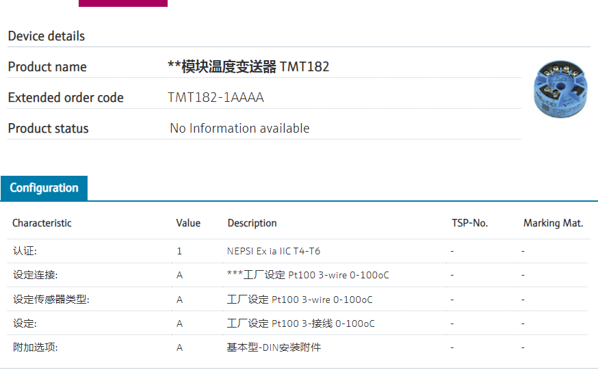 E+H最常用的4-20ma输出的温度变送器,可以接热电阻和热电偶。此型号默认为出厂设置3线制,0-100℃