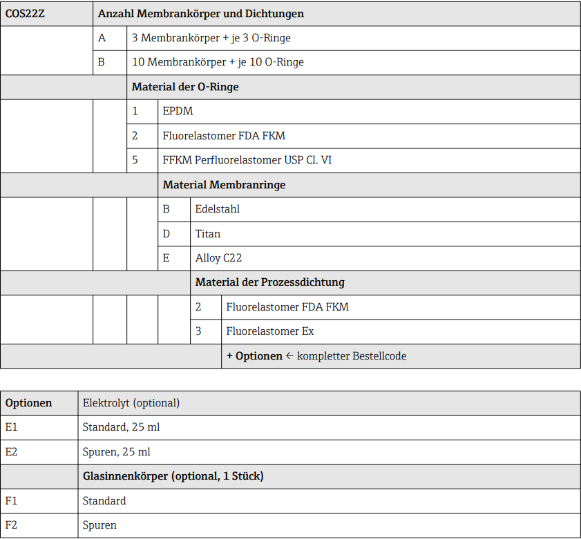 适用于COS22D/COS22E/COS22等传感器的溶解氧维护包,订购型号可以参考下面选型表