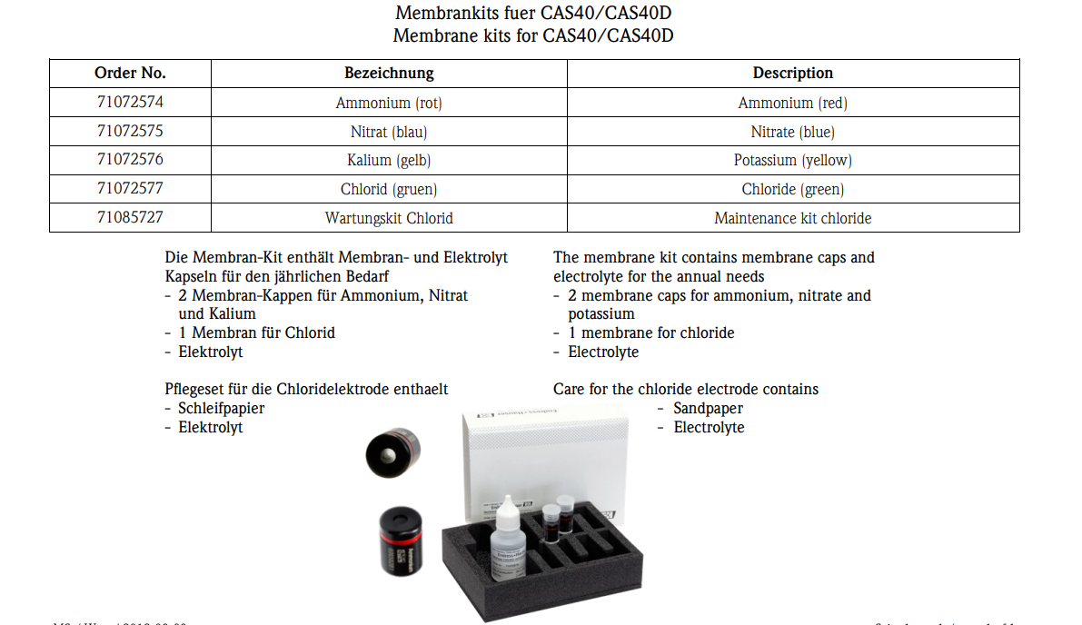 适用于COS22D/COS22E/COS22等传感器的溶解氧维护包,订购型号可以参考下面选型表