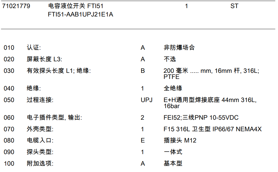 电容料位开关,NPT1螺纹接口,带断电器。 非防爆场合 连接; 螺纹 ANSI NPT1, PPS 继电器 20-253VAC / 20-55VDC 输出 外壳类型, 电缆入口; F14 塑料 IP66; 螺纹 NPT1 / 2