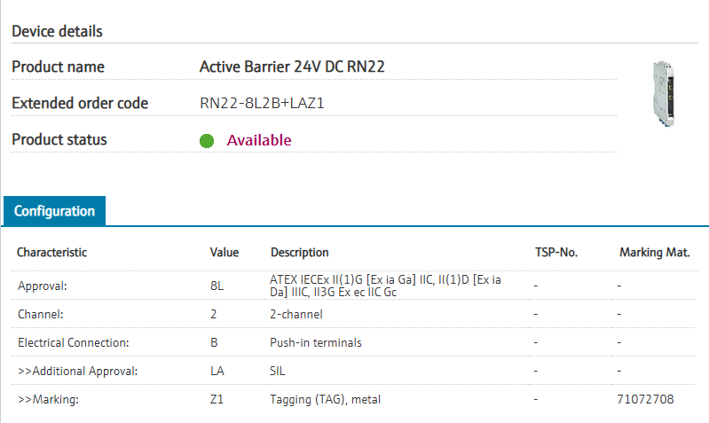 RN22-8L2BLAZ1 订货号 RN22-15F3/0 扩展订货号 (RN22-8L2B+LAZ1) 名称 Active Barrier 24V DC RN22 基本描述 Loop power supply, 0/4-20mA.