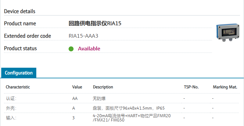 无防爆,4-20mA HART,可用于FMR20/FMX21/FMG50