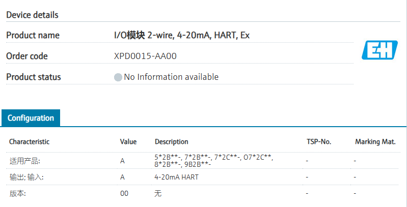 XPD0015-AA00 I/O模块 2-wire, 4-20mA, HART, Ex Non-Ex, Ex.1x current output HART. 在位置34