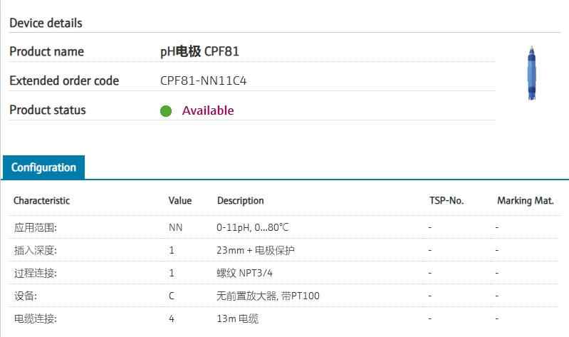 量程:0-14,耐高温0-140℃,带离子阱,适合卫生化工场合。 CPS71D-7TB21停产,替代型号:CPS71E-AA7BTB2