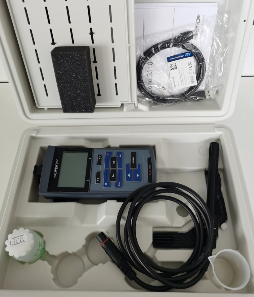 18、包含Cond3310主机,便携箱、电导率传感器、标准液、支架、烧杯、操作手册和电池等。