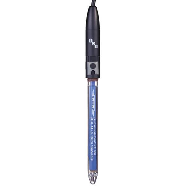 IDS pH combination electrodes with liquid electrolyte, glass shaft, platinum wire junction, integrated temperature sensor and QSC function. For precise lab measurements.