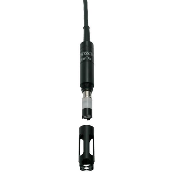 Galvanic oxygen sensor DurOx® 325 with OxiCal®-SL calibration and storage vessel, waterproof plug (IP 67), cable length 9.9 ft (3 m), 1 exchange membrane head and electrolyte, abrasive foil.