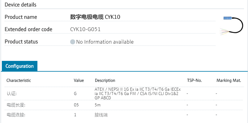 CYK10-J051 扩展订货号 CYK10-J051 名称 数字电极电缆 CYK10 基本描述 Application: digital sensors with