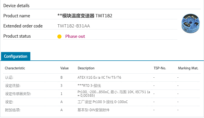 E+H最常用的4-20ma输出的温度变送器,可以接热电阻和热电偶。此型号默认为出厂设置3线制,0-100℃