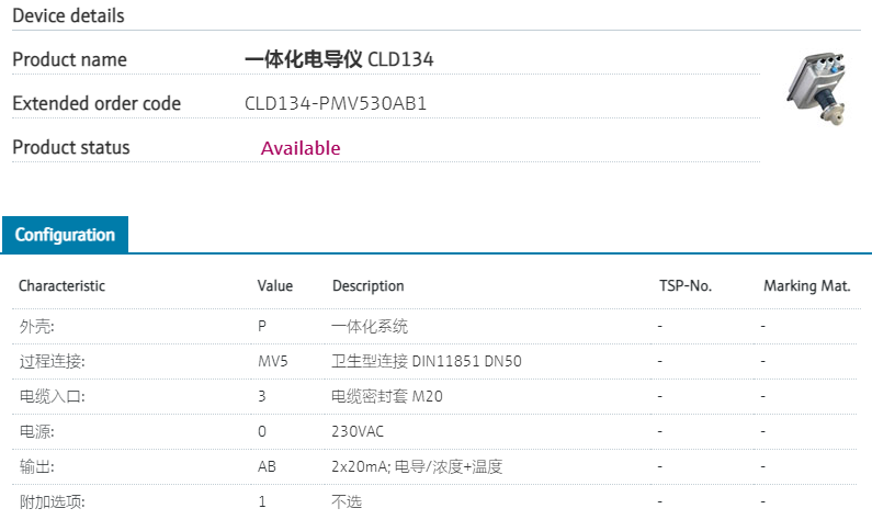 CLD134-PMV530AB1 扩展订货号 CLD134-PMV530AB1 名称 一体化电导仪 CLD134 基本描述 Measuring system, conductivity