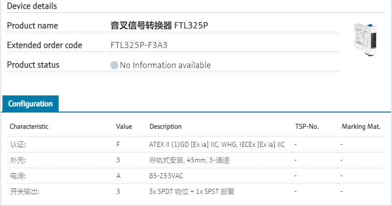 最常用的音叉液位开关,最经济的型号,满足大量液位开关的需求,常备现货,非常经济实惠! 替代FTL20-0020, 非防爆场合 10-30VDC; 3线 PNP 输出 M16霍斯曼接头,螺纹G1/2过程连接