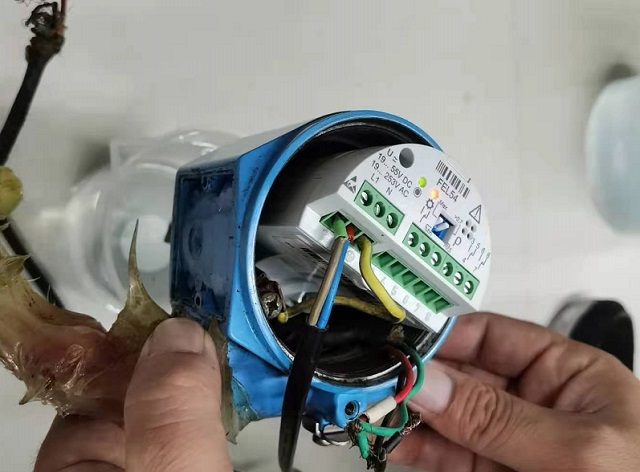 当我们把叉体浸入液体时候,可以看到绿灯亮,红灯也亮。