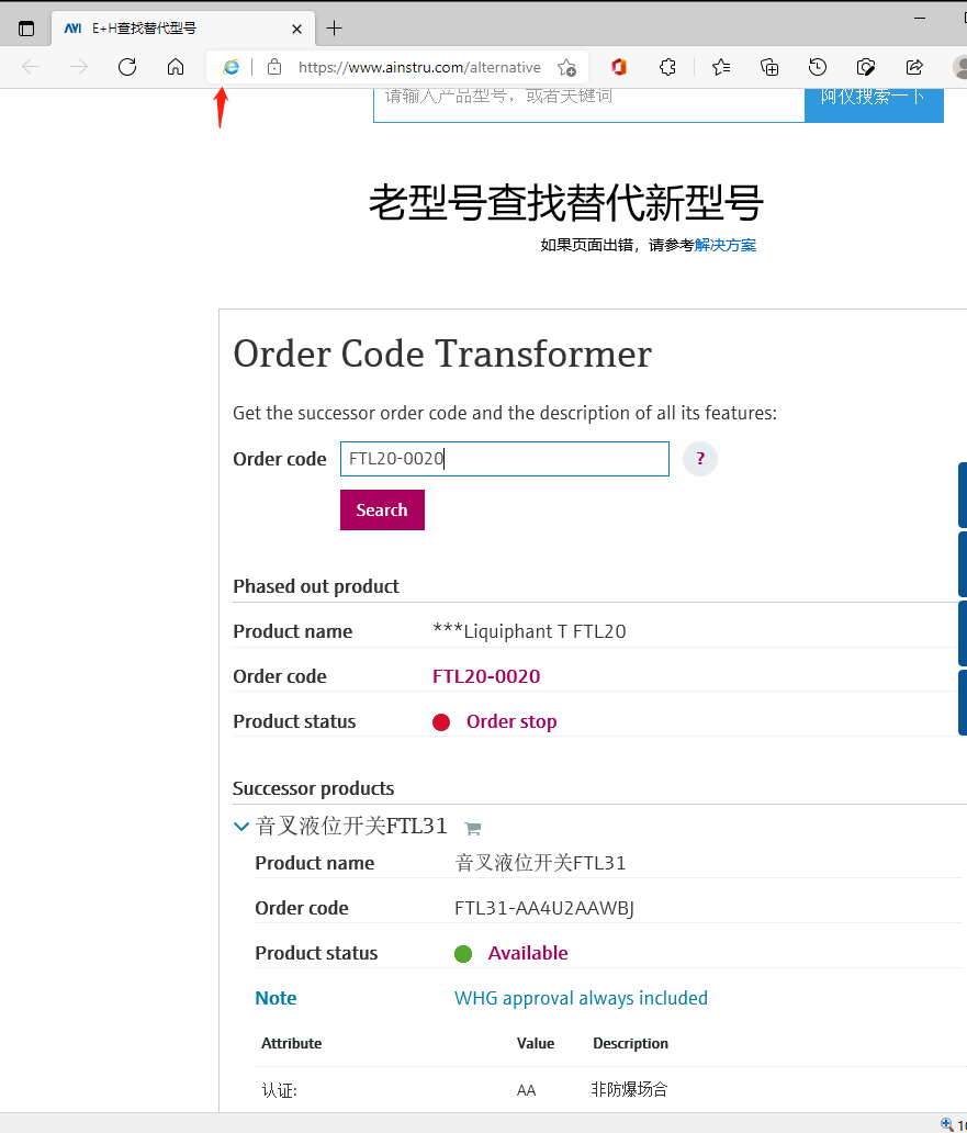 E+H替代型号查询工具不能在新版Edge浏览器工作的解决方案