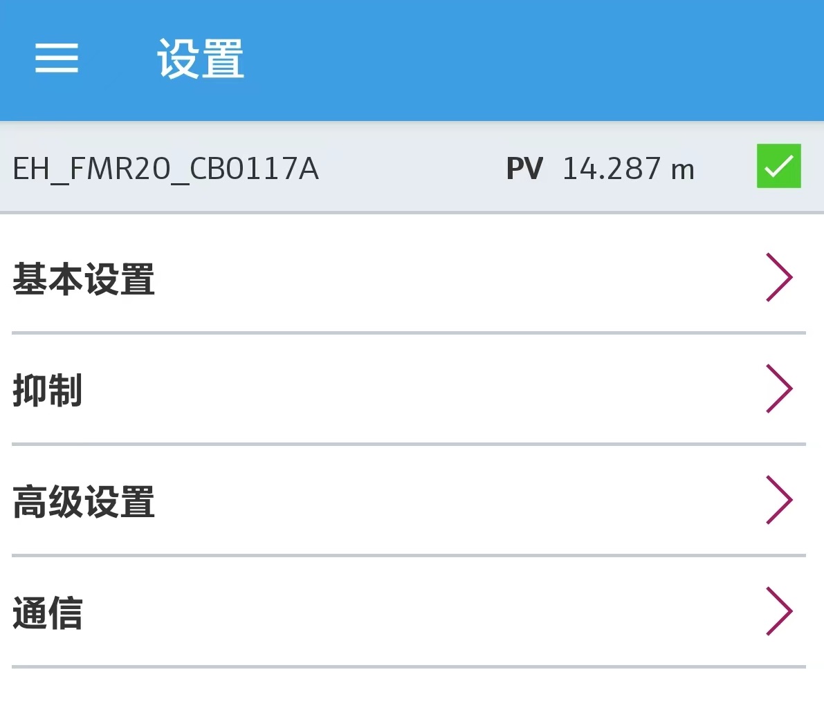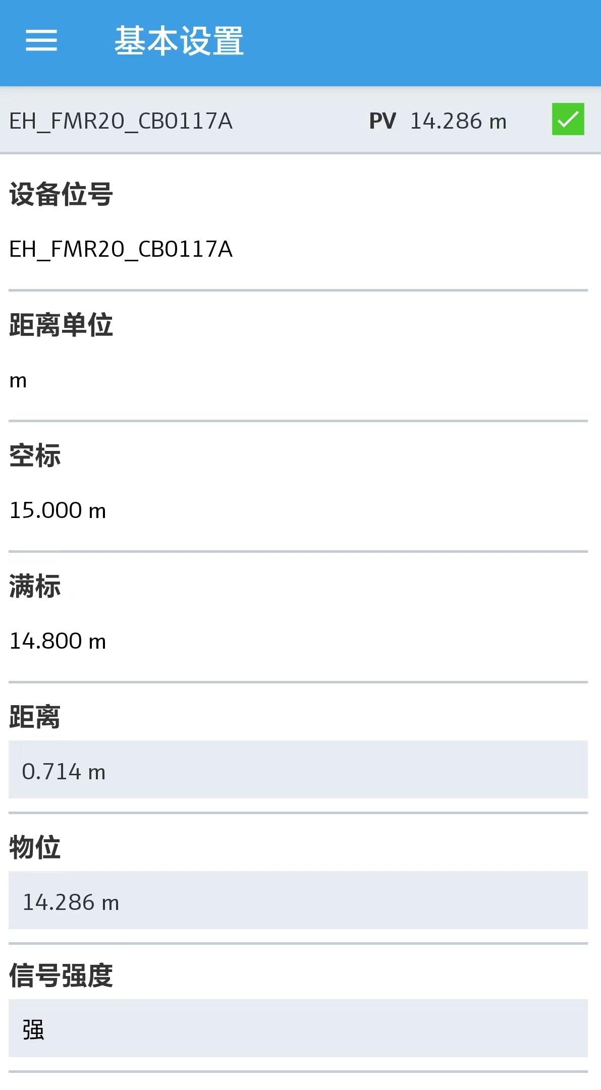 2.通电后,在手机找到Smartblue软件来连接FMR20,用户名为admin,密码是序列号。登录进去后,点击设置,进入基本设置。在基本设置中,可以设置距离单位,空标,满标。