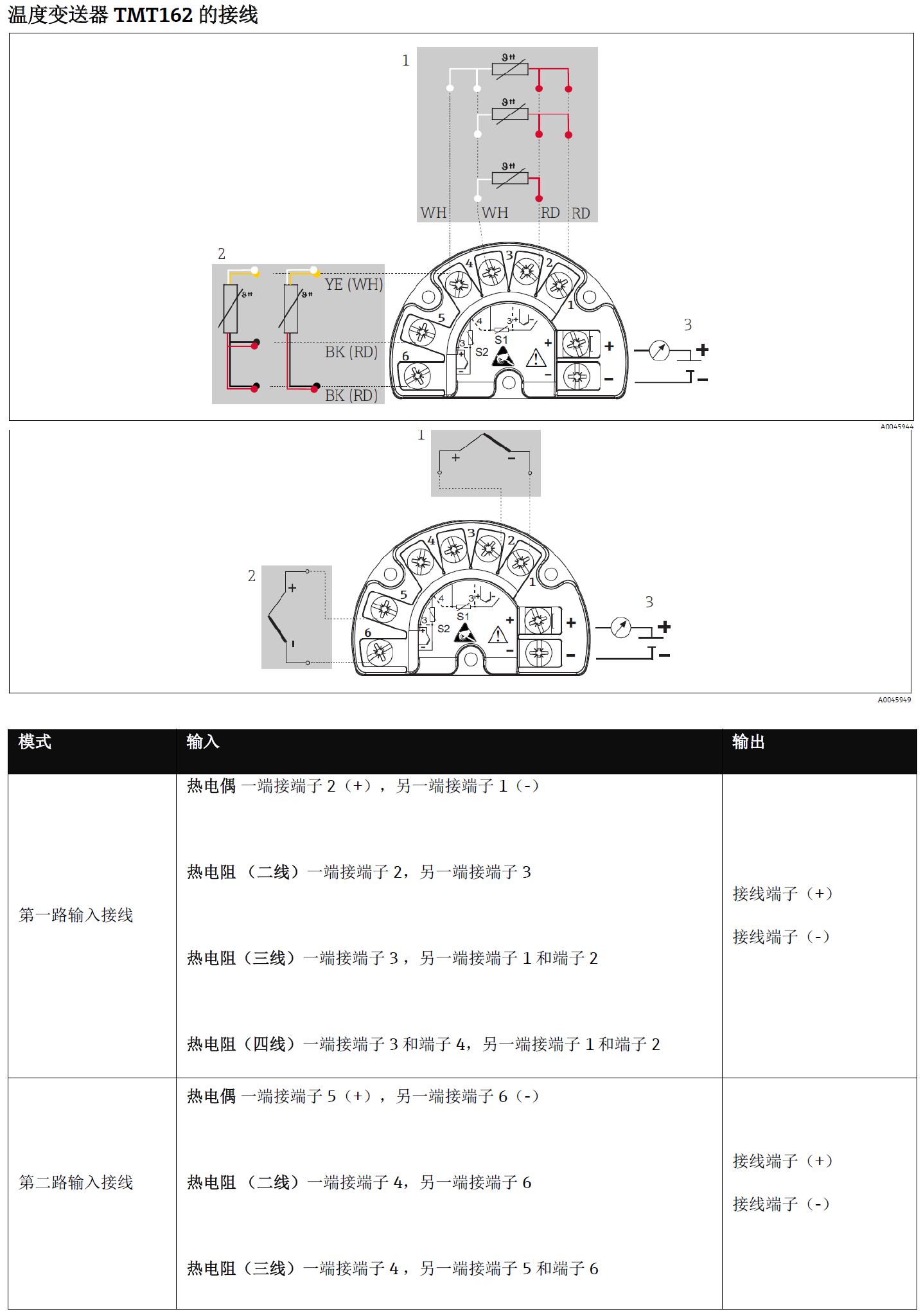 温度变送器TMT162的接线:分热电偶的接线跟热电阻的接线。
