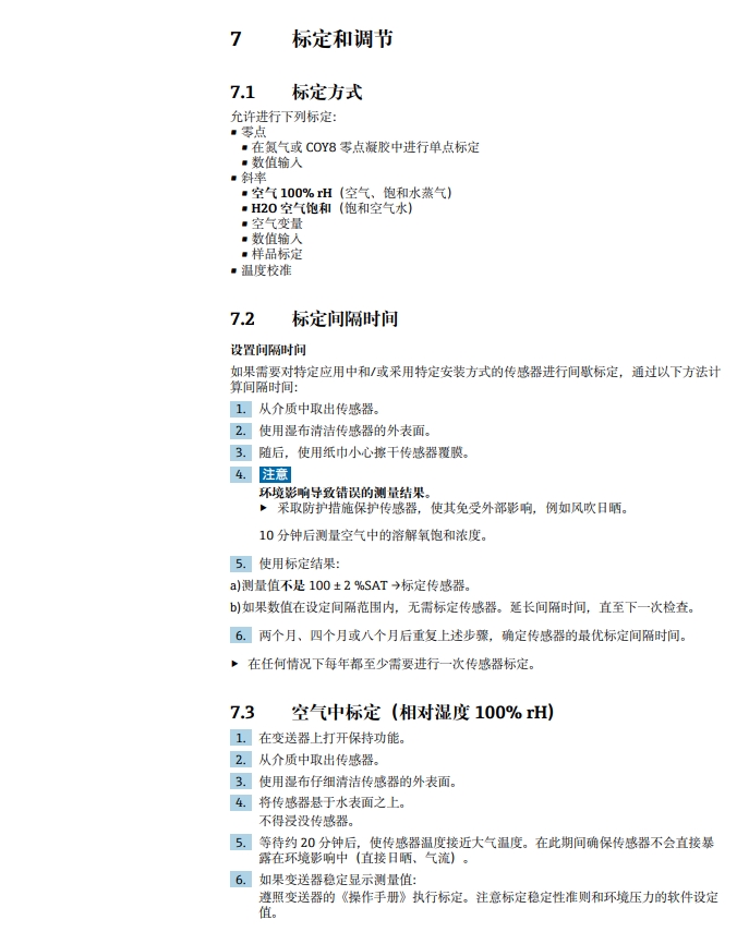 5.使用滴定管向标定容器中加入已知量的标准溶液,并记录下加入的体积和对应的电位值.6.根据电位值和已知的溶解氧浓度计算传感器的响应斜率、截距和响应时间等参数