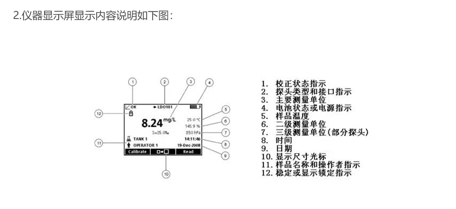 LDO溶解氧探头的传感器帽校正数据已包含在纽扣电池ibutton中,用户不需要校正,即可以直接开始测量。将探头放入水样中,直接按绿键,即可以读出数据(二)探头校正