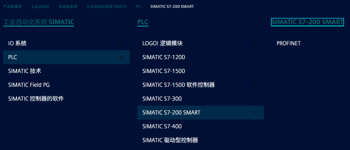 选择产品和服务,然后再选工业自动化,再选择自动化系统,最后选工业自动化系统SIMATC
