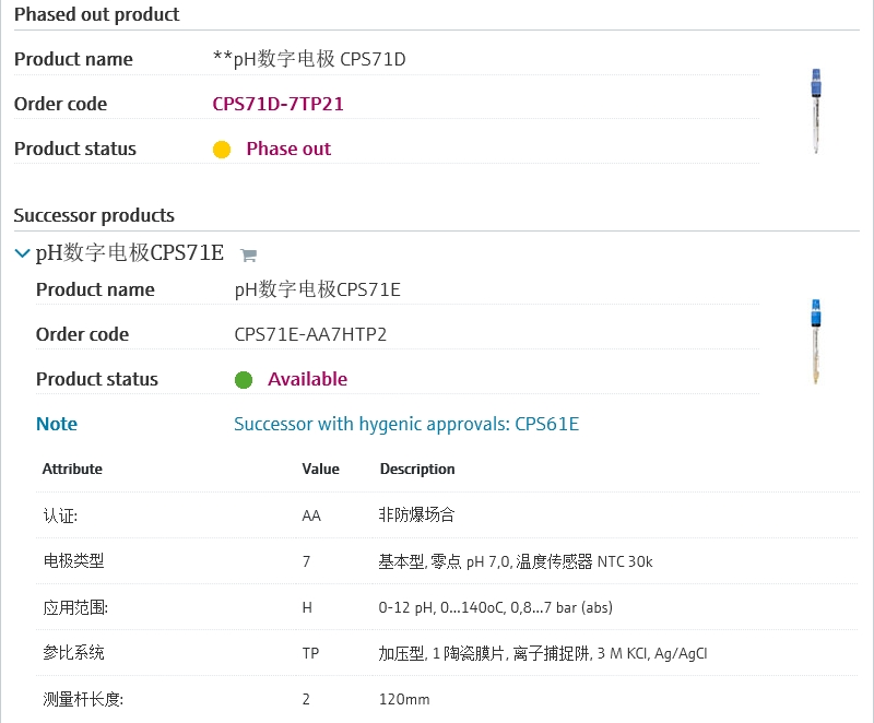 CPS71D-7TP21 扩展订货号 CPS71D-7TP21 名称 ***pH数字电极 CPS71D 基本描述 pH comb. electrode,