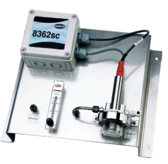一套完整配置的高纯水 pH 分析仪由 sc200 控制器及8362sc 探头,流通池,安装面板组成。