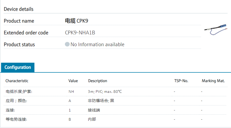 模拟电极电缆,3米长度; 电缆长度;护套;3m; PVC; max. 80度C 非防爆场合;黑 连接;接线端 电势连接;内部