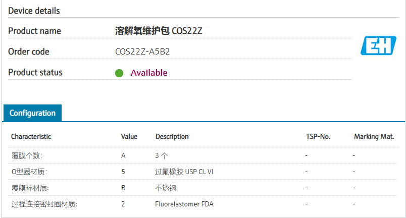 适用于COS22D/COS22E/COS22等传感器的溶解氧维护包,订购型号可以参考下面选型表