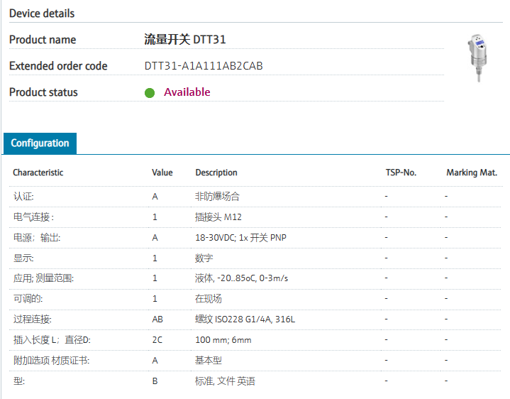 DTT31-A1A111AB2CAB 扩展订货号 DTT31-A1A111AB2CAB 名称 流量开关 DTT35 基本描述 智能流量开关