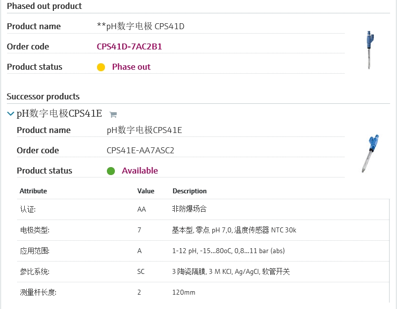 PH量程:1-12,带软管开关,适合低电导率应用场合,CPS41D的新款CPS41E-AA7ASC2