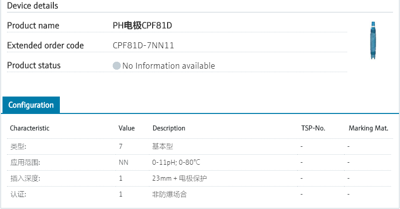 量程:0-14,耐高温0-140℃,带离子阱,适合卫生化工场合。 CPS71D-7TB21停产,替代型号:CPS71E-AA7BTB2