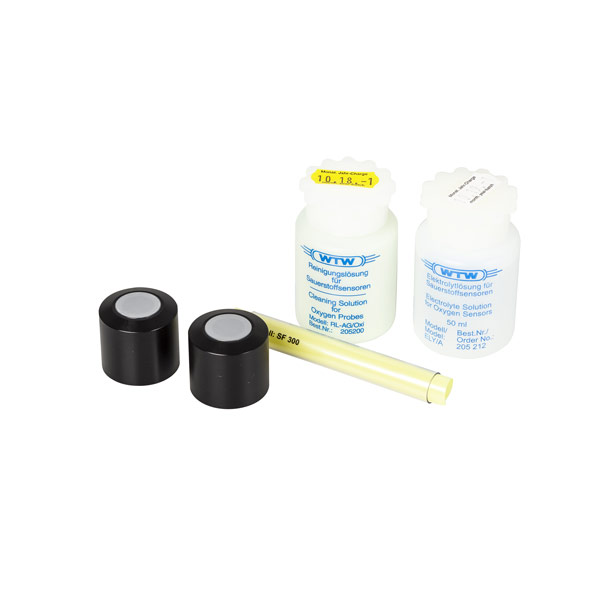 ZBK 600: Accessory kit for D.O. sensors TriOxmatic® 600/690/700/700 IQ/700 IN series, complete set for regeneration of D.O. electrode. Included: 2 exchange membrane heads (WP 600/2), 50 ml electrolyte solution (ELY/A), 50 ml cleaning solution (RL-AG/Oxi), 1x cathode cleaner (SF 300)