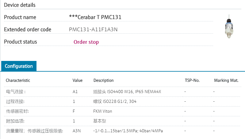 防爆,量程1.6MPa绝压,M20x1.5过程连接,带M16插接头,4-20ma输出 PMP131的型号已经停产,替代型号:PMP21-BA1U1QBX4J