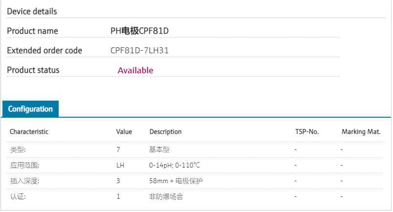 量程:0-14,耐高温0-140℃,带离子阱,适合卫生化工场合。 CPS71D-7TB21停产,替代型号:CPS71E-AA7BTB2