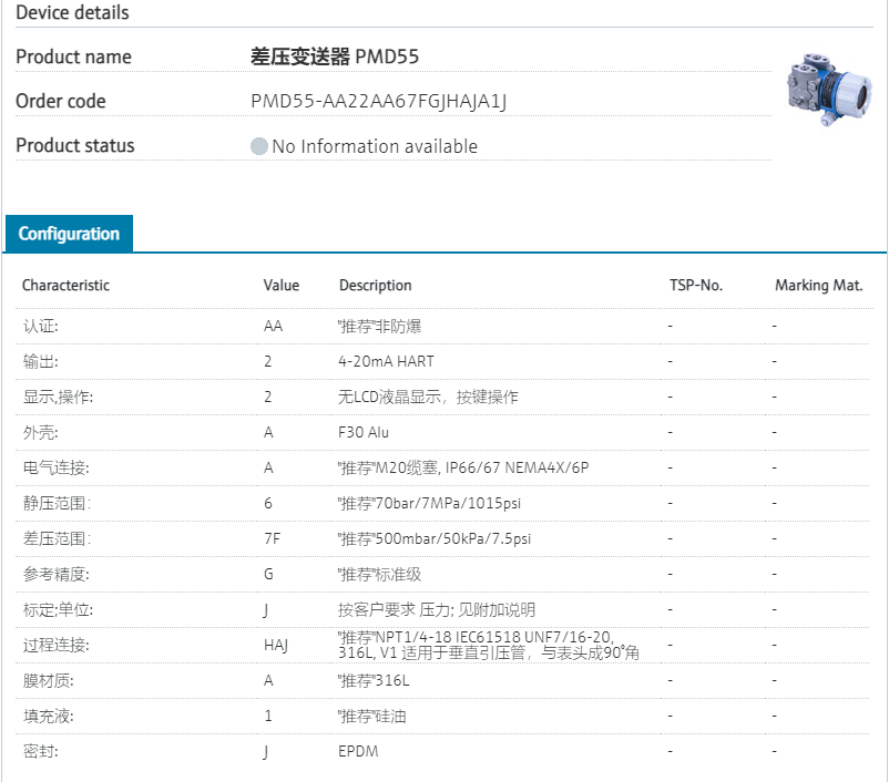 量程:0-50Kpa, 4-20ma HART输出,不锈钢材质,不带显示,不防爆。