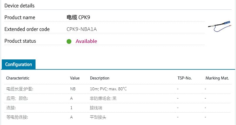 E+H数字电极电缆,适合所有带memosens接口的电极,支持PH/ORP, 电导率,溶解氧,浊度,余氯.....,阿仪常备大量5米,10米的现货,价格优惠,欢迎采购 CYK10-A031 电缆长度3米 CYK10-A051 电缆长度5米 CYK10-A101 电缆长度10米 CYK10-A151 电缆长度15米 CYK10-A201 电缆长度20米